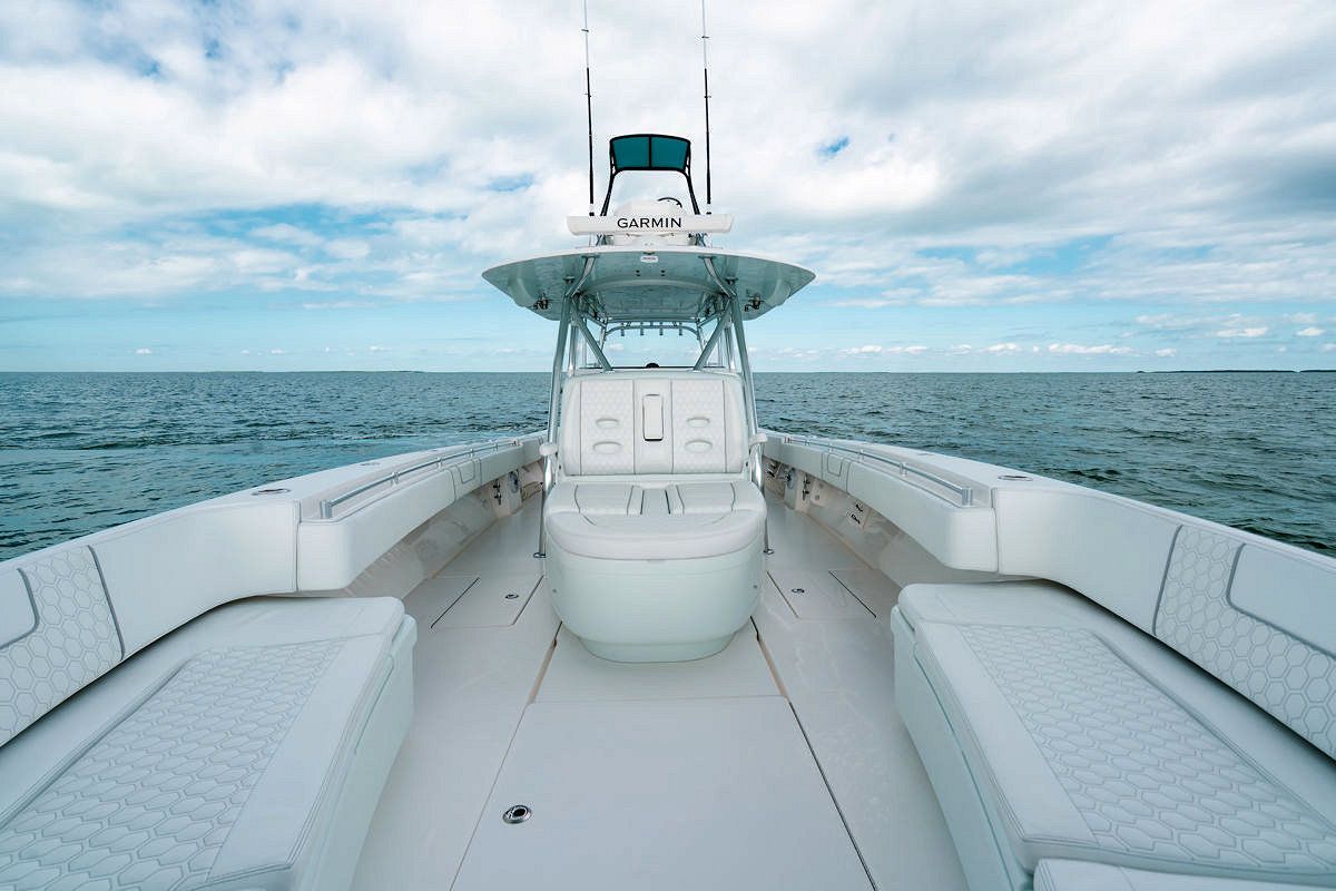 - 42' LOA | 13' Beam | Massive footprint offering stability, fishability, and comfort offshore