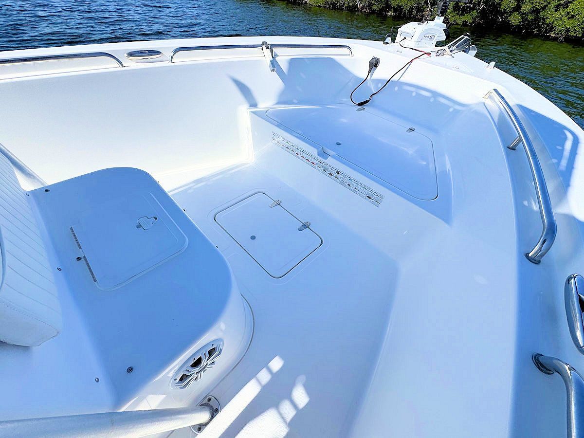 - Twin insulated fishboxes (129 gal forward, 66 gal aft)