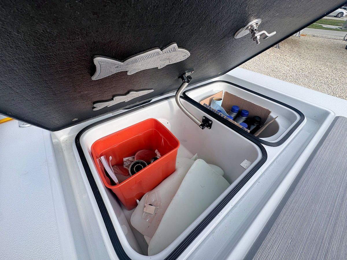 - Front seating aluminum off deck ice chest surround or built-in live well